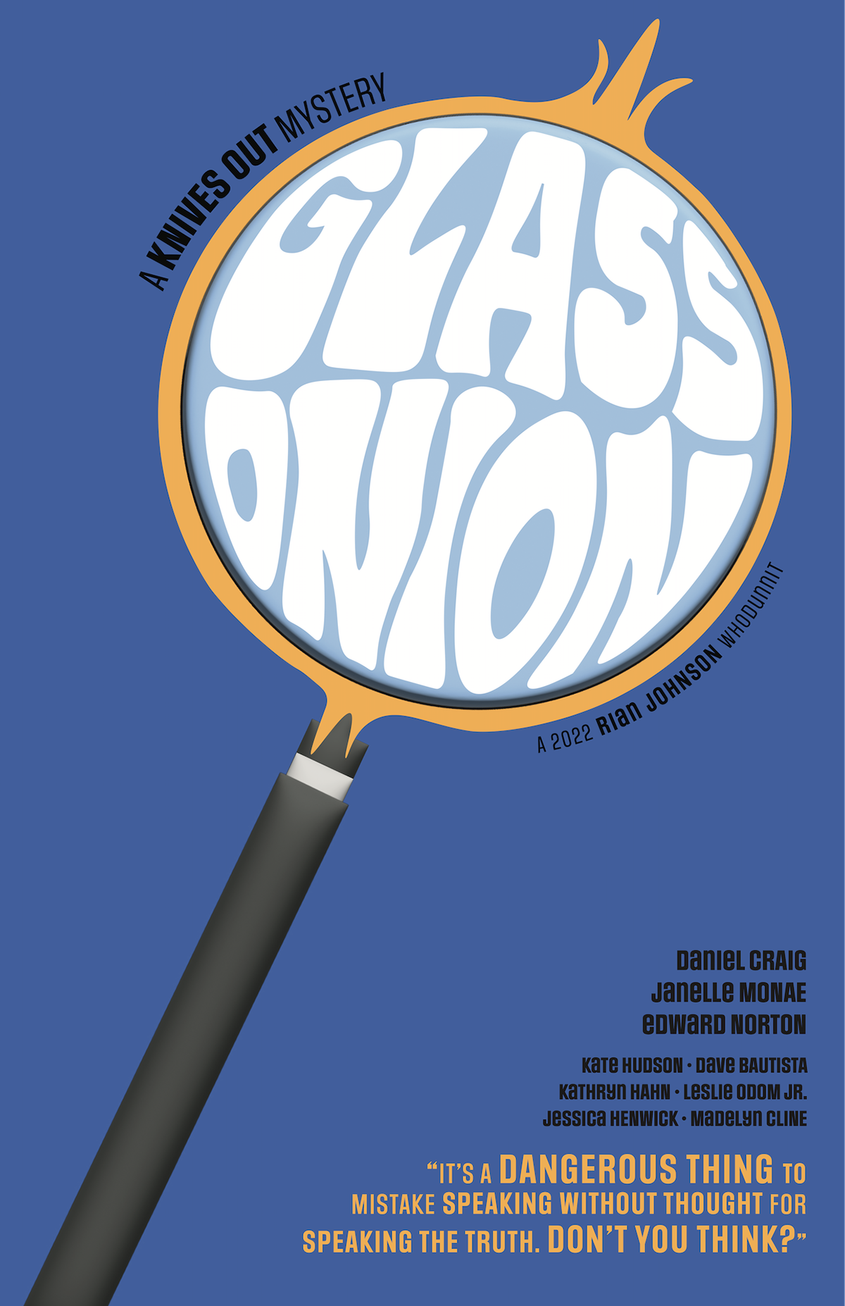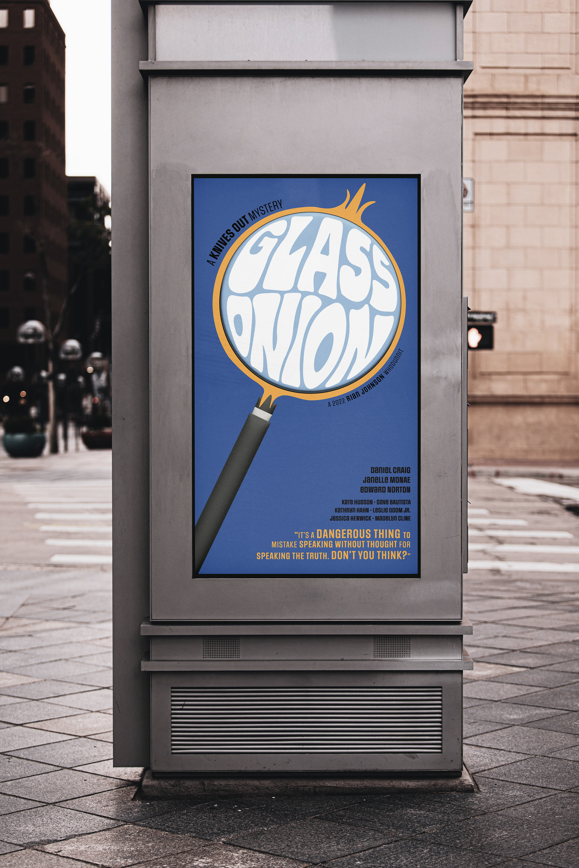 Simple movie poster for the film "Glass Onion", a Knives Out Mystery. The focus of this project was a movie poster heavily reliant on typography rather than graphic imagery.