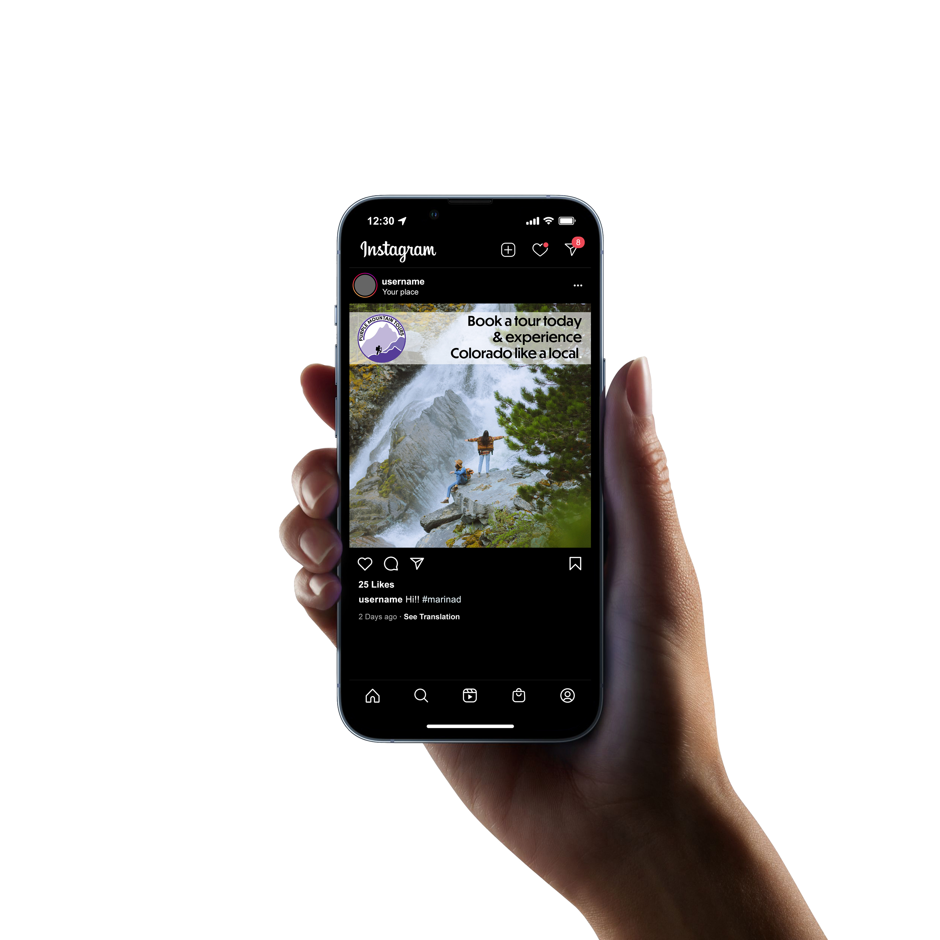 Here are a few examples of social media posts for Purple Mountain Tours, who offer tours for adventurous travelers. The tours give a "locals" view of different Colorado sites & experiences for a more holistic approach to traveling and making friends.