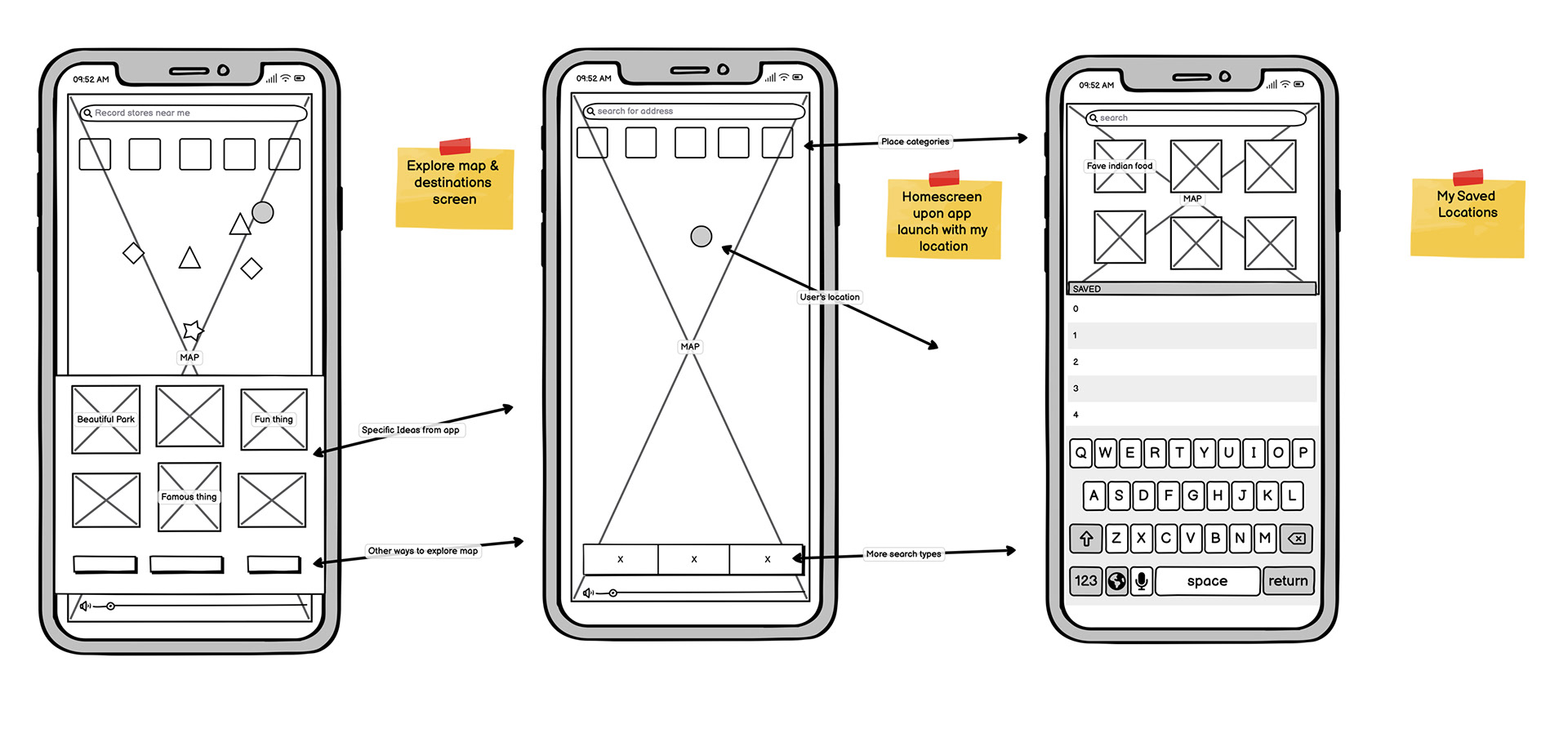 Early stage click-through prototype for basic navigation of the app.